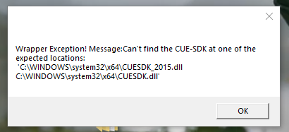 A Corsair CUE exception is thrown when the app is launched on Windows startup.